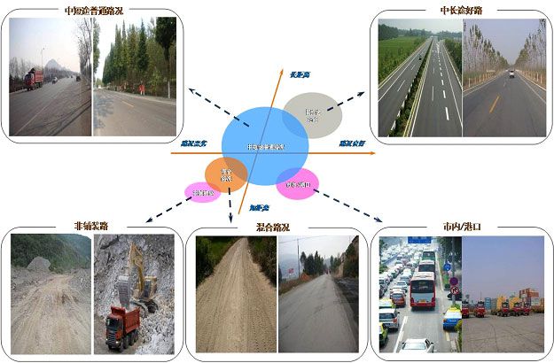 是指较差路况条件下(二、八路况及好坏路各占50%的路面)工程建设等短距离(运输距离在50—200Km之间)、高载荷的运输市场,速度不超过60Km/h。